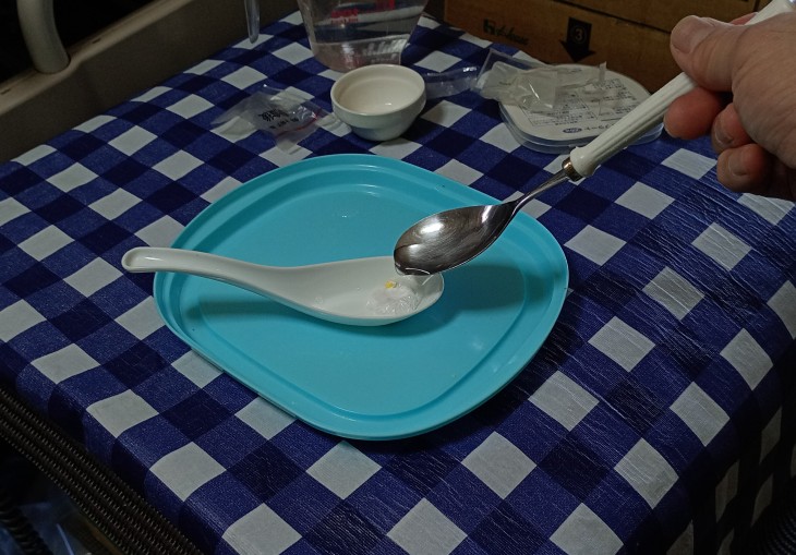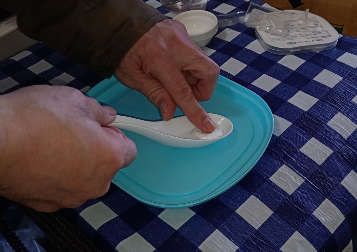 【手順7】レンゲにある薬をスプーンですくって口の中に入れる ↓