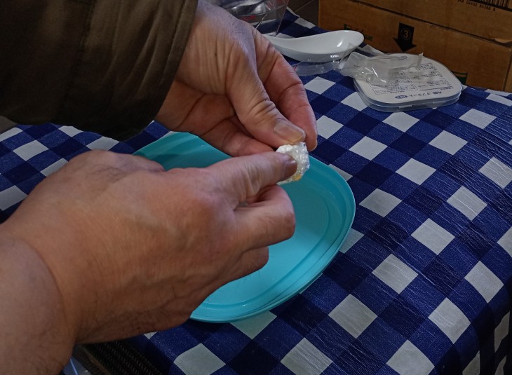 小皿からオブラートを取り出して、ねじり ↓